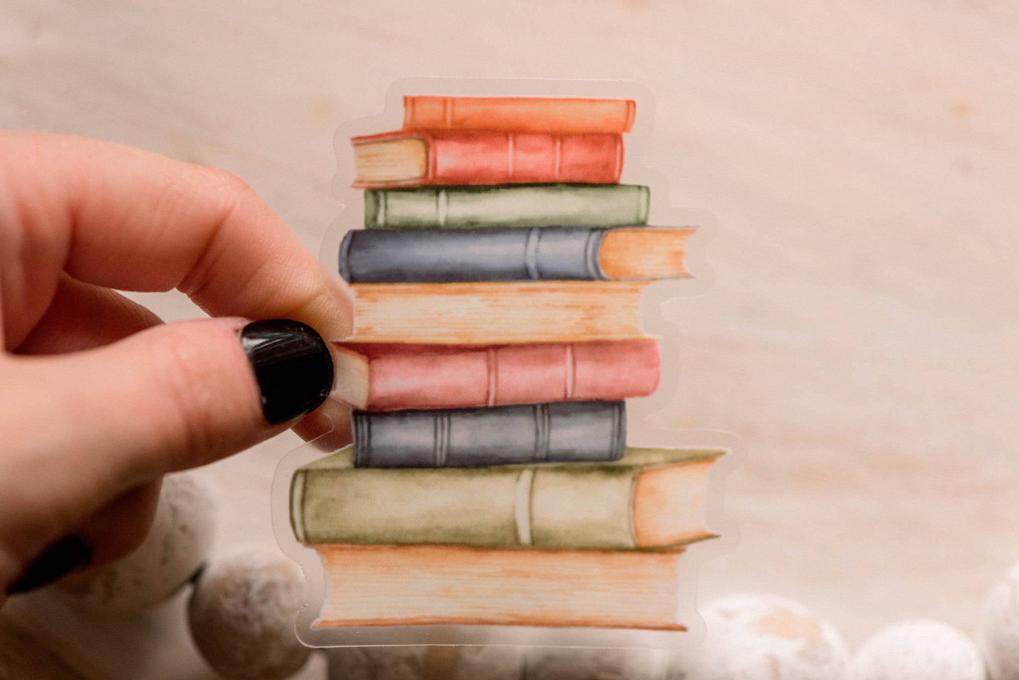 Stack Of Books, Clear Vinyl Sticker, 3in.